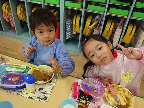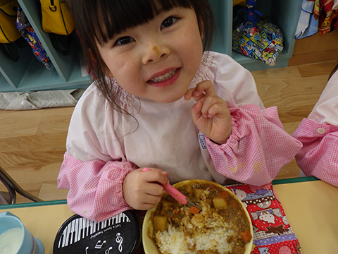 口だけじゃ物足りず鼻でも味わう子どもたち