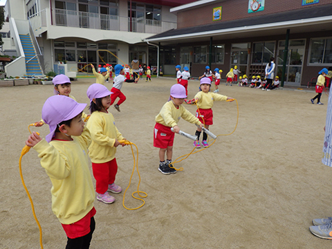 マラソンやなわとび、ドッジボールで菌に負けない体づくりをし