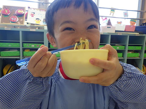 「みそラーメンってはじめてたべた〜!」と言っていた男の子は