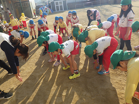 今日はマラソンの様子ではなくマラソン前の準備体操を