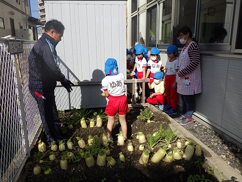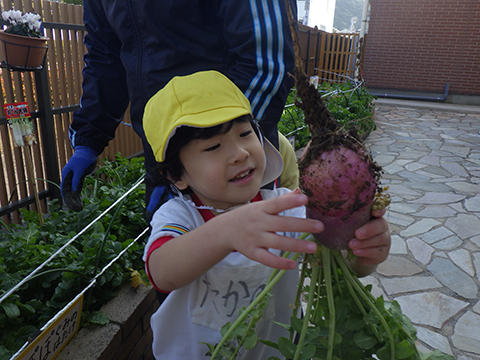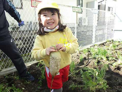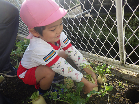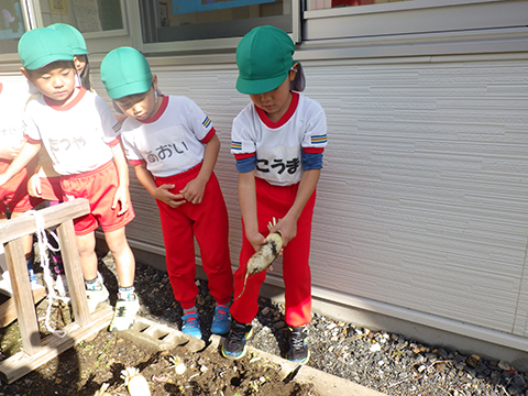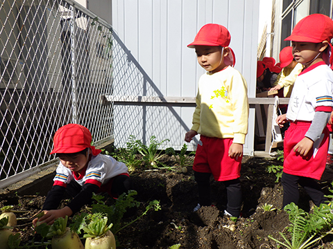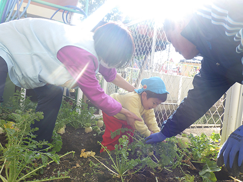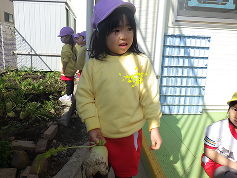 たねちゃんたちも、おそらくはじめての大根掘り!