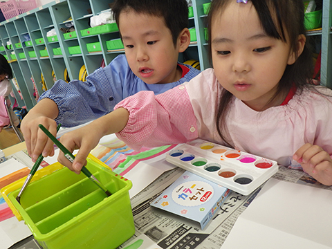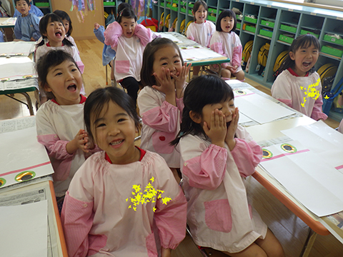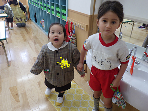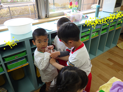 下の階へ行き新入園児の手伝いをする先輩たち!