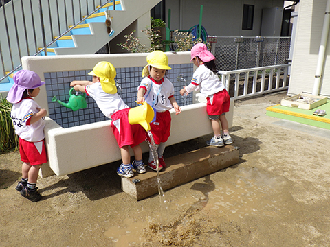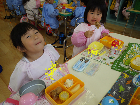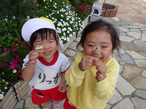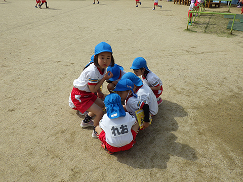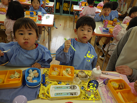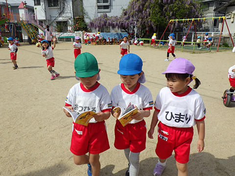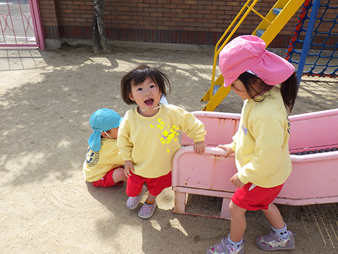 たくましい2歳児が早くも先輩となった年少児(3歳児)に
