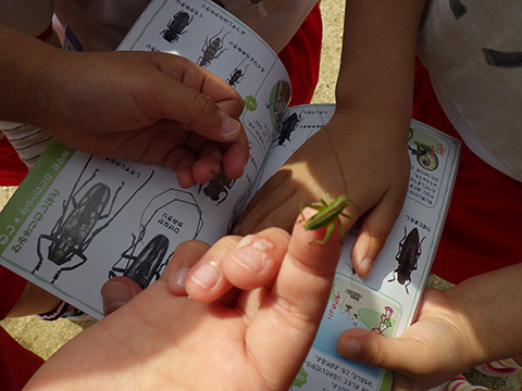 どうも新種の虫を発見したらしく、みんなで会議中・・・。