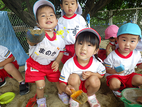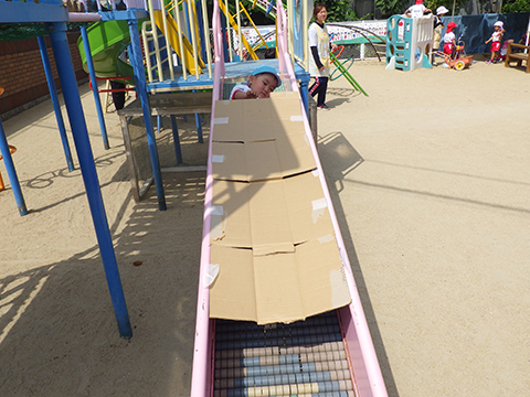 玄関のキリンも、砂場のサルも知らない人が朝方や夕方に見たら