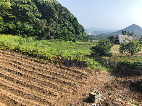 夕方、秋の収穫へ向けて畑に芋さしへ行ってきました