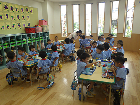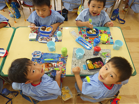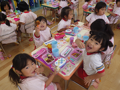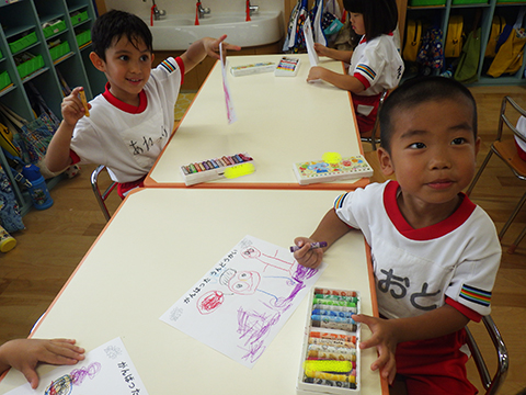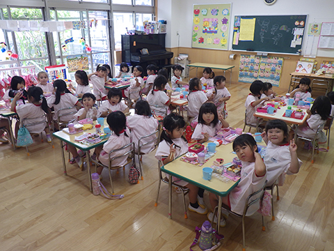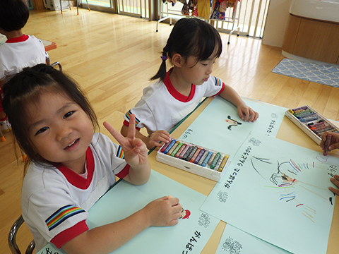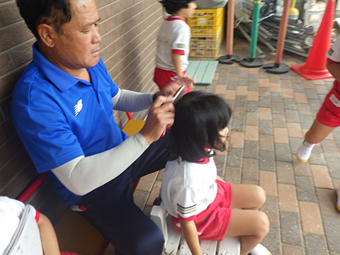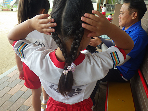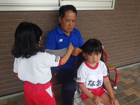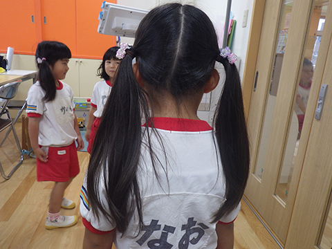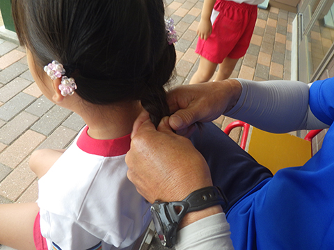 結ぶ様子を見てた女の子が「わたしもしてー」とお願い。