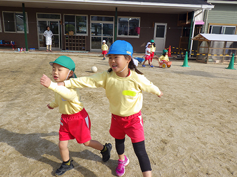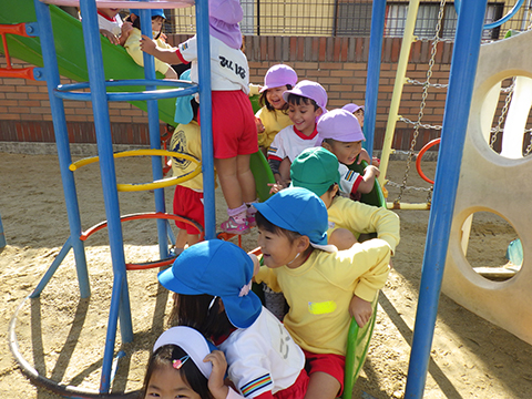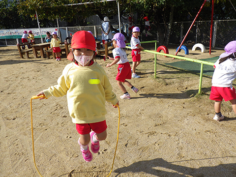 なわとびや、おしくらまんじゅう状態のすべり台で身体を温め、