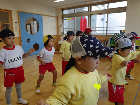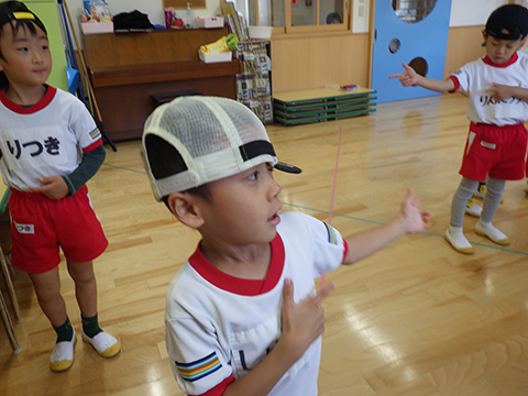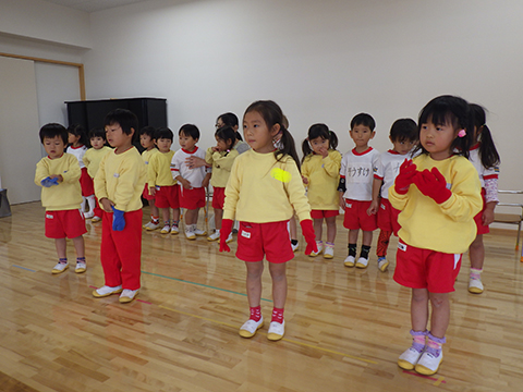 おゆうぎ室での練習中、