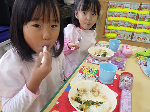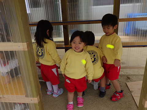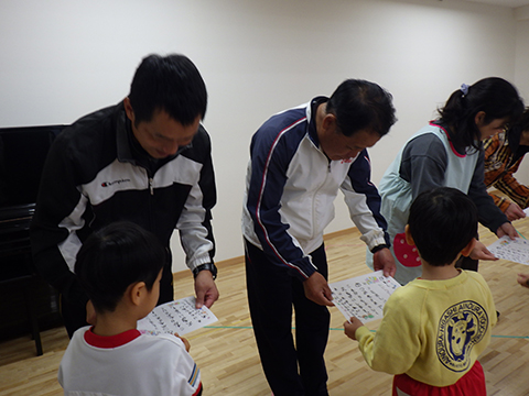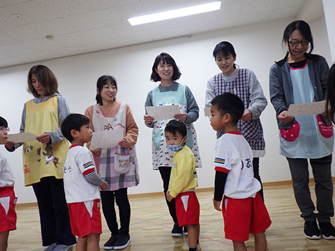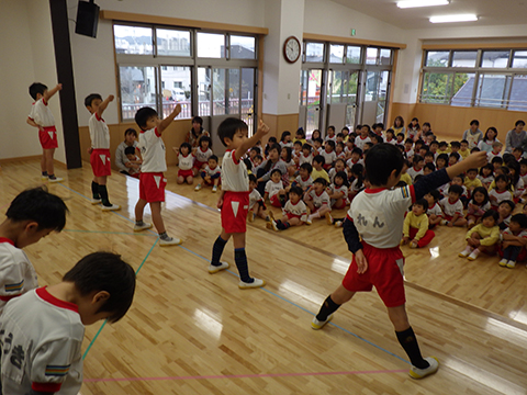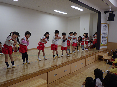 今日は全員おゆうぎ室に集まっておゆうぎの練習