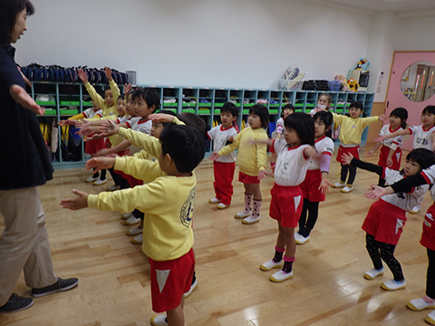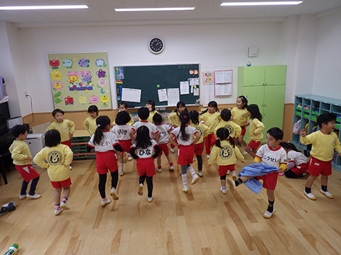 年長児が年中児の教室へ行って踊りの指導