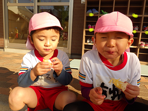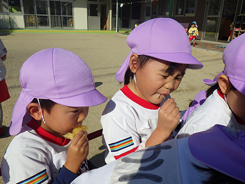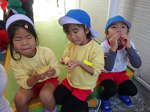 園庭では、久しぶりに旬のあの果物を・・