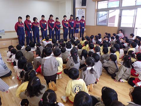 みんなの前で一言ずつあいさつをしてもらい、