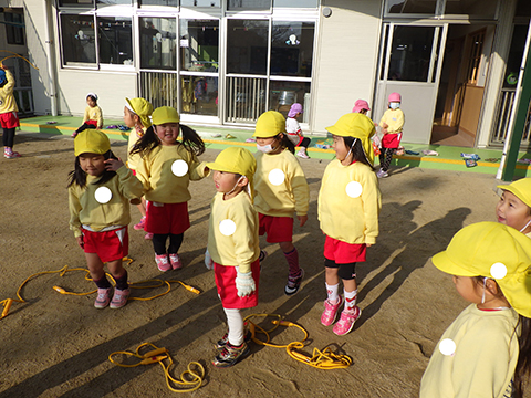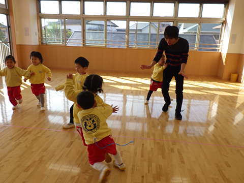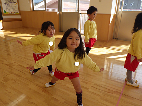 屋外のあとはおゆうぎ室で体操教室