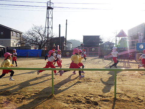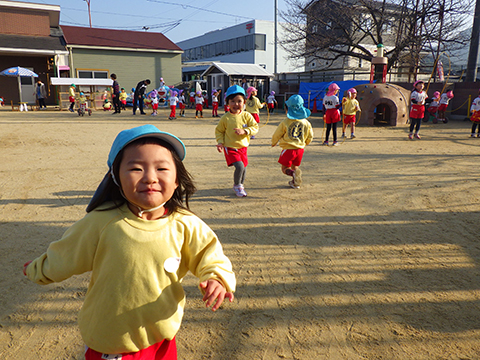 しっかり準備体操をしてから園庭をぐるぐる