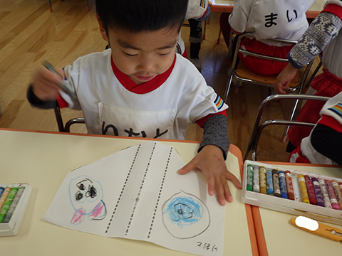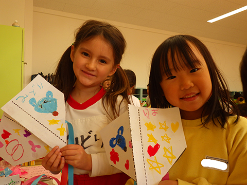 教室で製作するのは、来週の凧あげに向けて凧作り