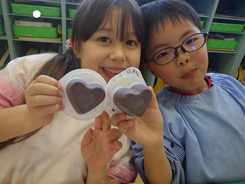 給食はシチュー、そしてデザートは2月14日ということで、