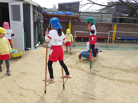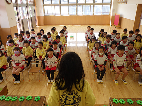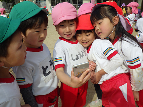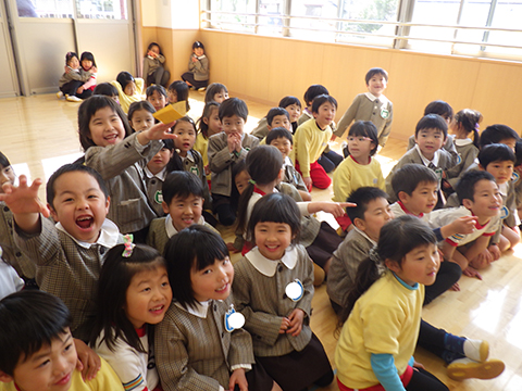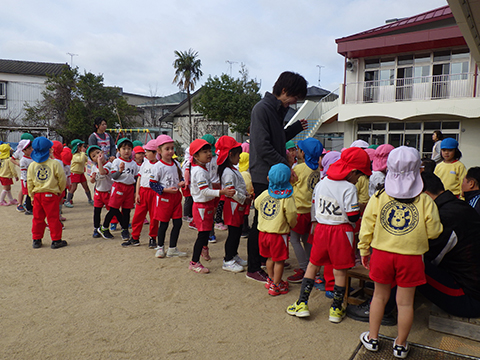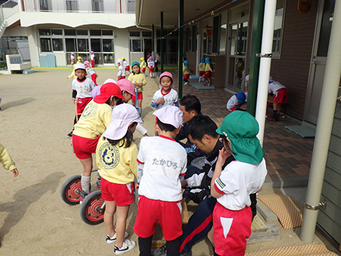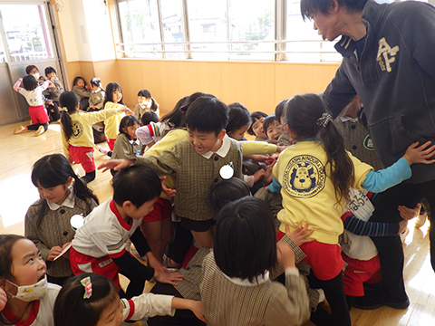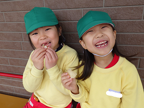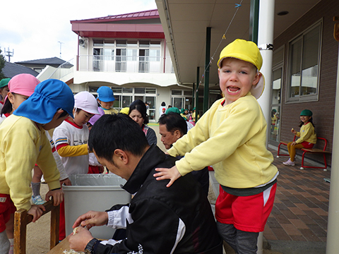 Kぼさんに甘えながらなんなら一個もらおうとしている園児!