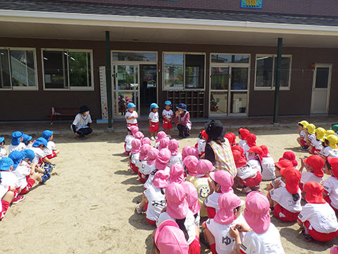 今朝は全員集まって5月入園の新しい友だちを紹介