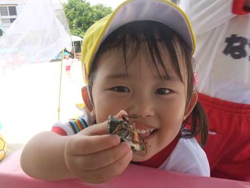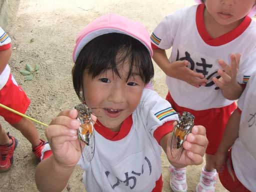 また逃がしてあげますので、明日も園児に捕まえられてくださいね、セミ