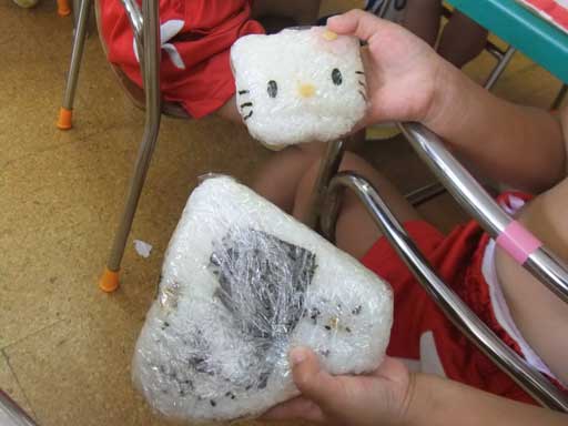 園児のかわいいキティちゃんおにぎりと、