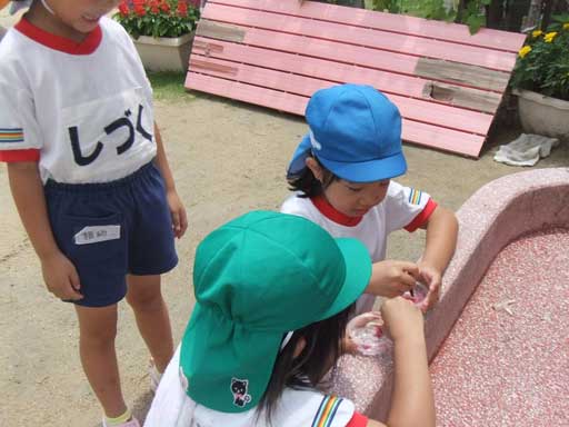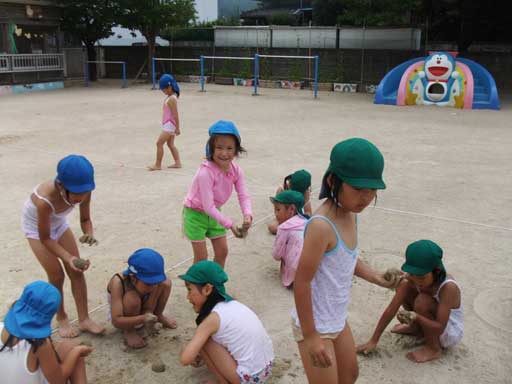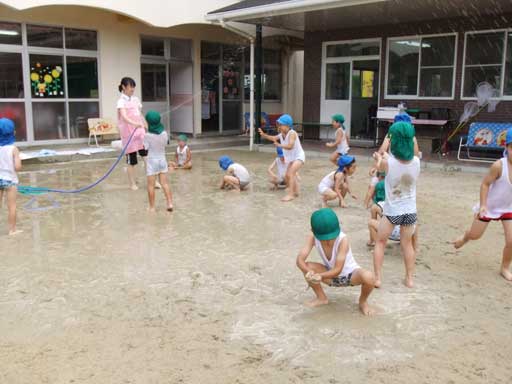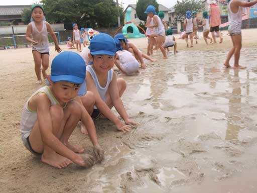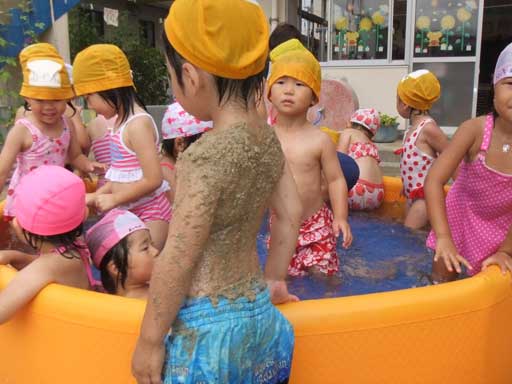 ひと汗かいたところで年長組さんが水(泥んこ)遊び