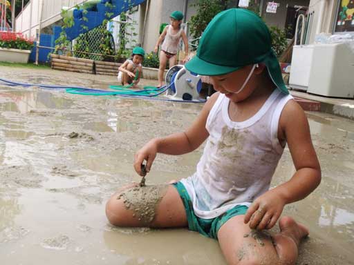 さらに、プールに飽きたら水たまりを使って大好きな泥んこ遊び