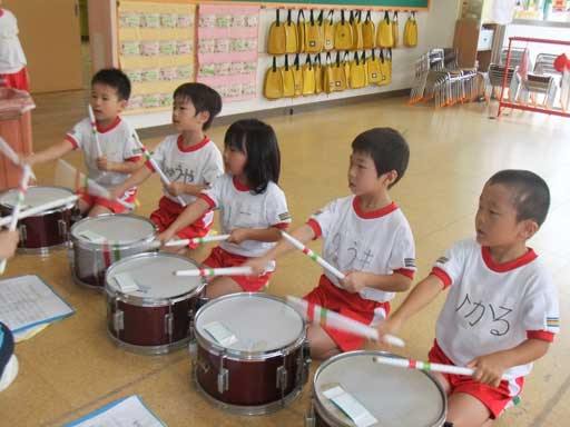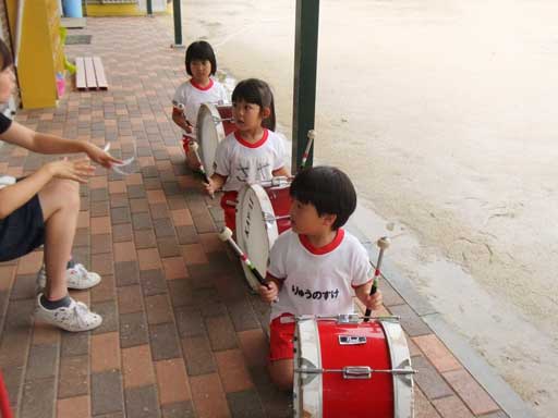 マーチングの練習で少しお疲れ気味だった年長組さんも