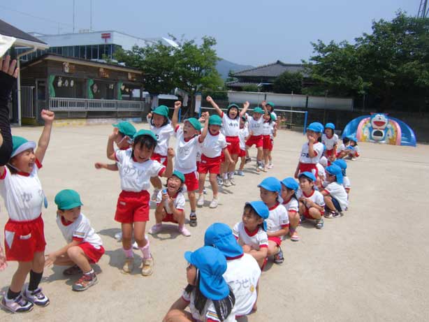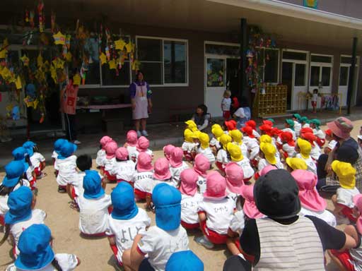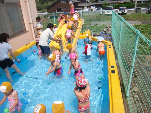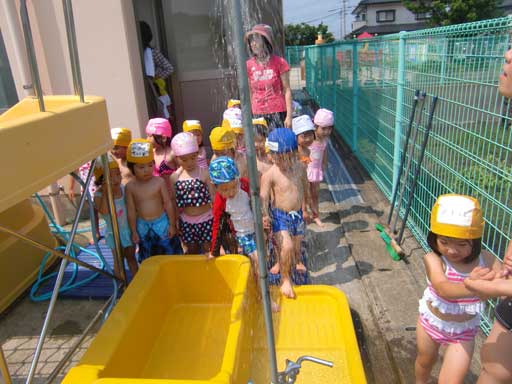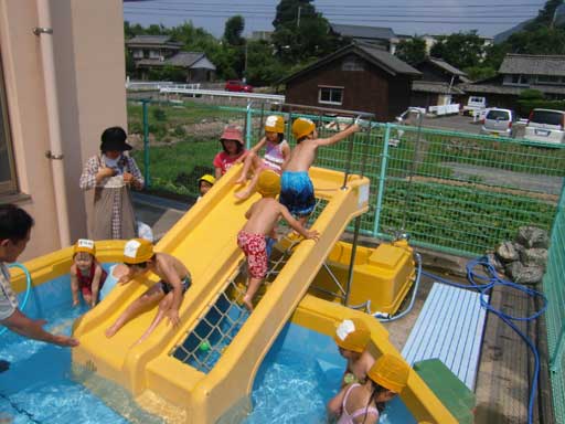そう、今日は東相浦幼稚園へおじゃまして、水遊び