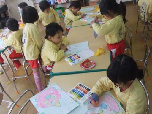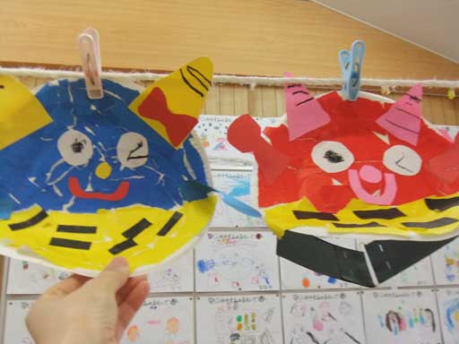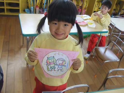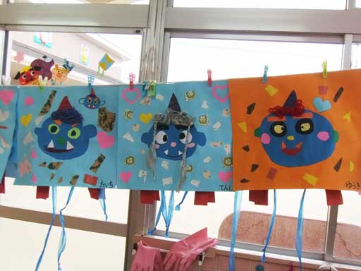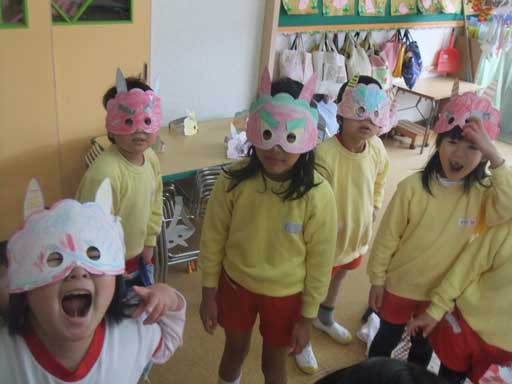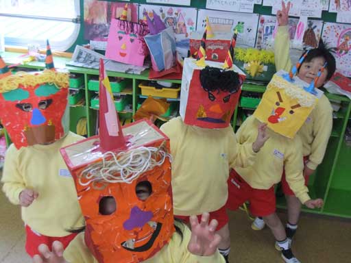 年中さんでは、こわ〜い鬼のお面を作って豆まきの日に 年長さんを脅かしてやろう