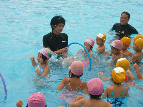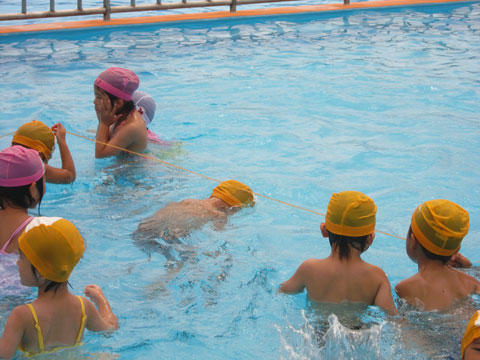 幼稚園へ戻った後、畑名人がゴーグルをつけ、潜って