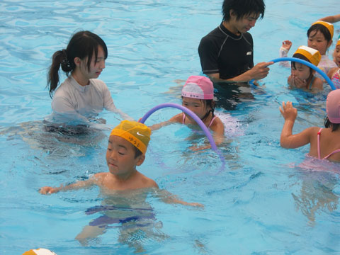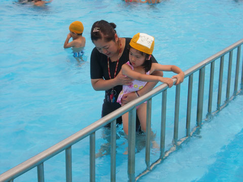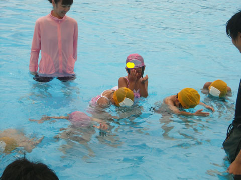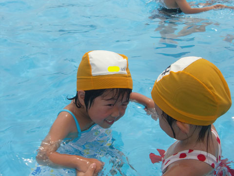 プールがちょっと苦手な子も、おそるおそる・・・。