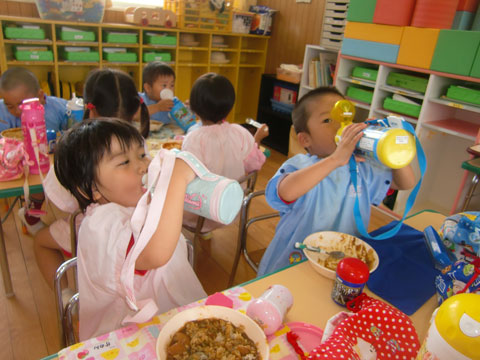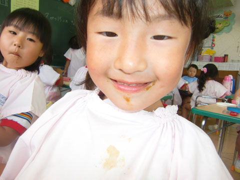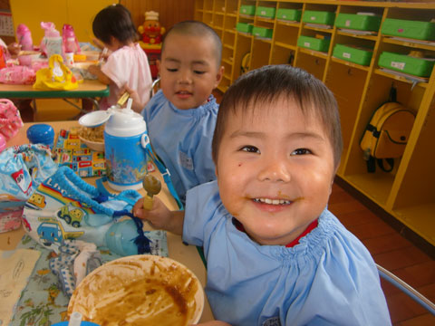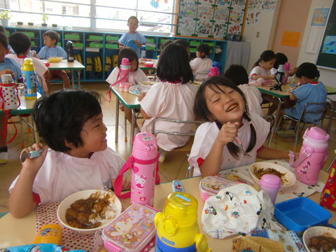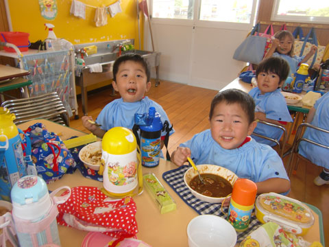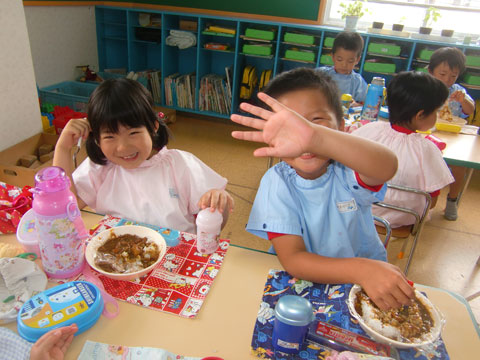 幼稚園へ戻ると、すでにカレーの良い匂いが各クラスから