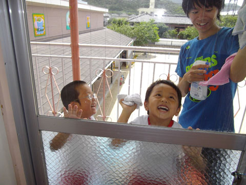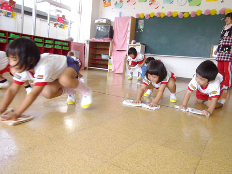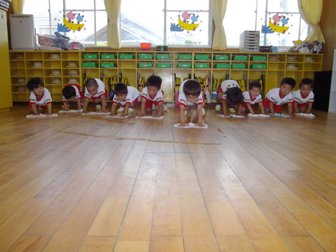 みんなで並んでする雑巾がけも、もちろん楽しみの1つ