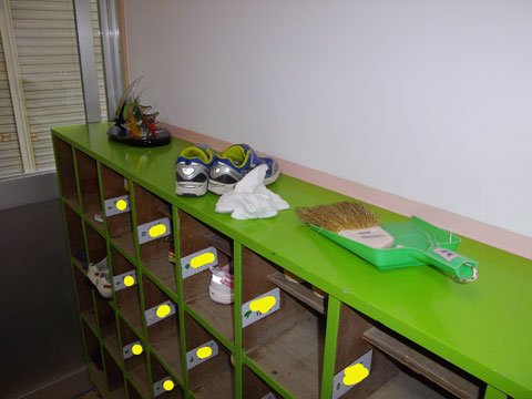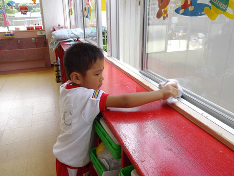 棚からお道具箱を出し、雑巾やほうきを手に隅々までキレイに