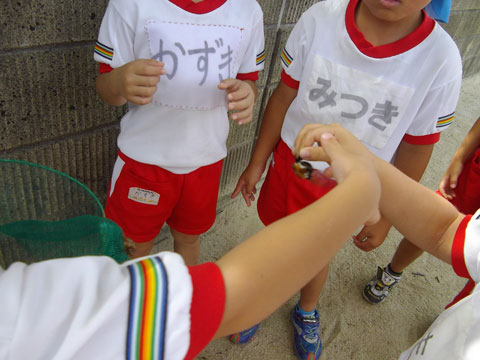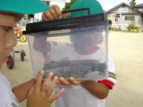 川の生き物もいいですが、年中組さんは、