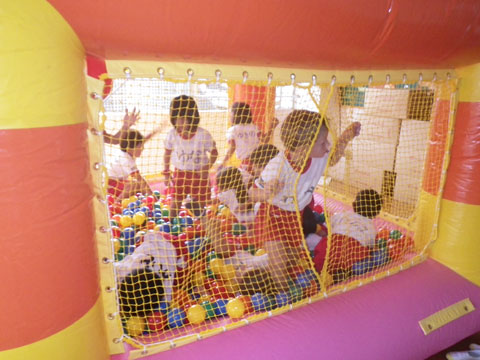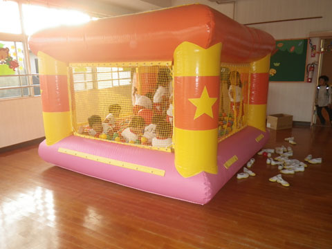 夕方、明日のオープンハウスのために“ボールプール”を出しました