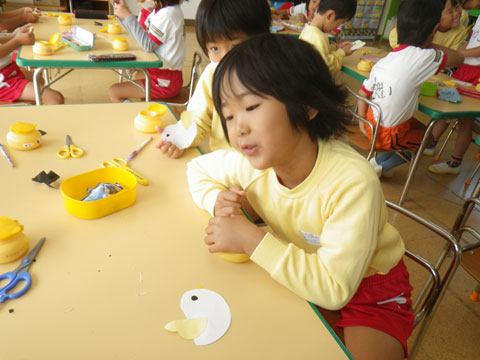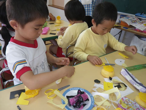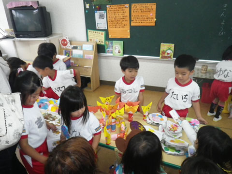 球根を植え終わった後の年長組さんは、ハロウィン製作