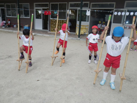 江戸時代以降に広まったと言われる竹馬で遊ぶ、