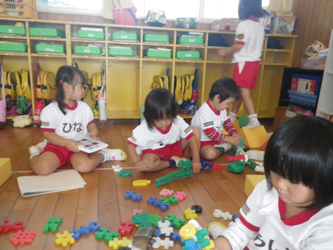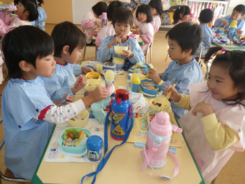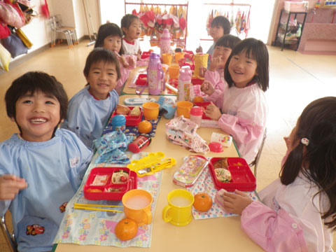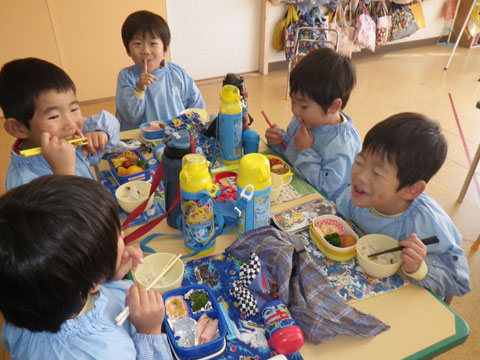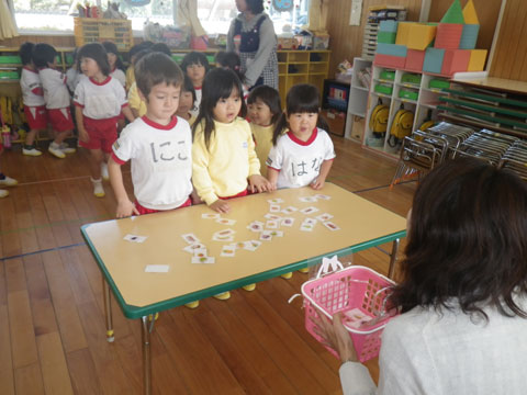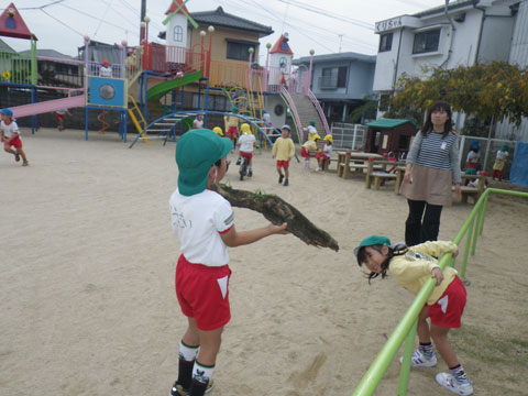本日の年少組さんは、東相浦幼稚園へお出かけ中