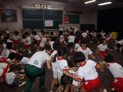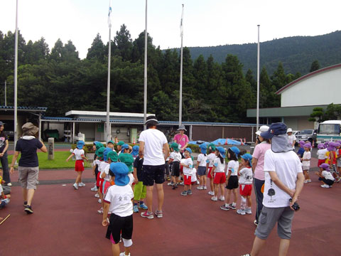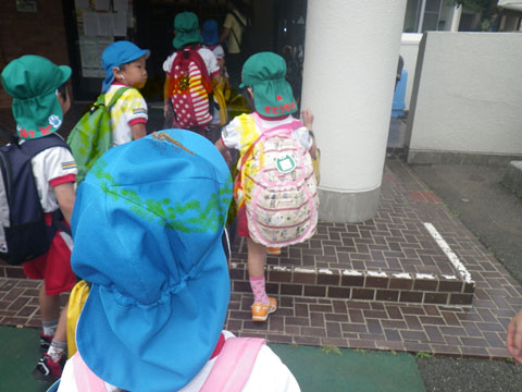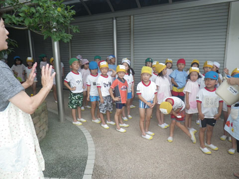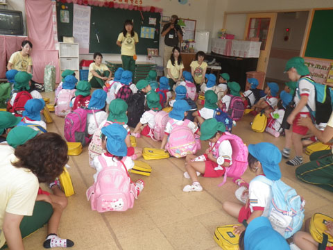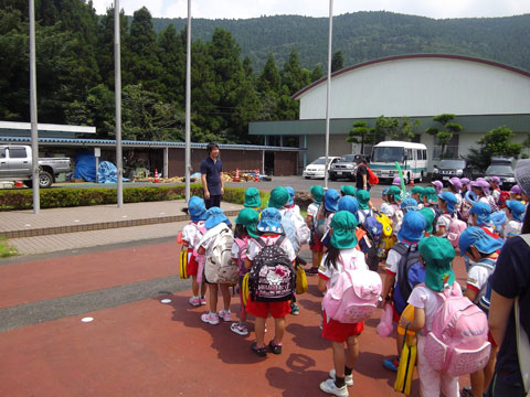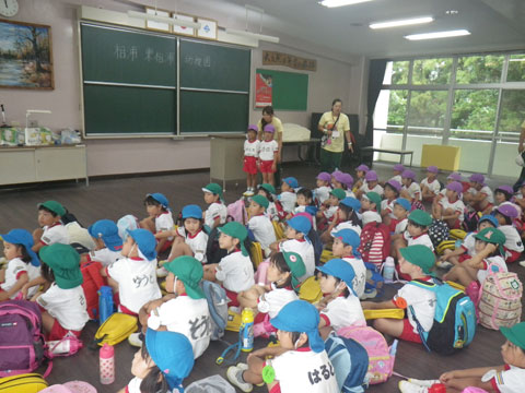 いつもと違う雰囲気の幼稚園へ年長児が集結