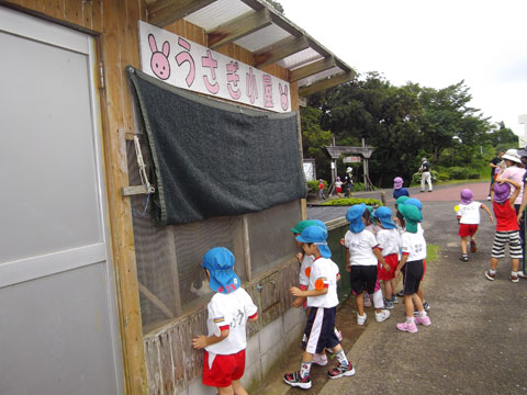 自然の家へ戻ると、ウサギがお出迎え