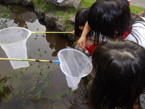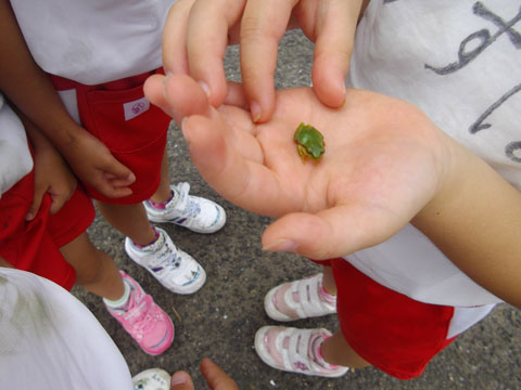 「ほら。みて〜!かえるのあかちゃん!」
