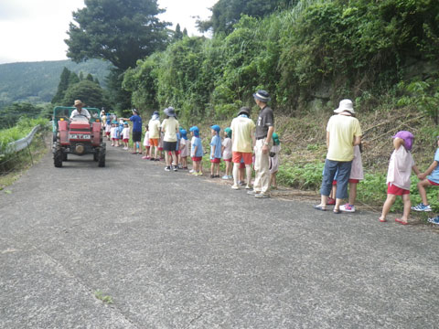 トラクターに道を譲る、こんな風景もキャンプならでは
