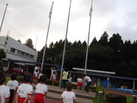 『国旗・県旗・所旗係』の仕事も朝は掲揚する時間、