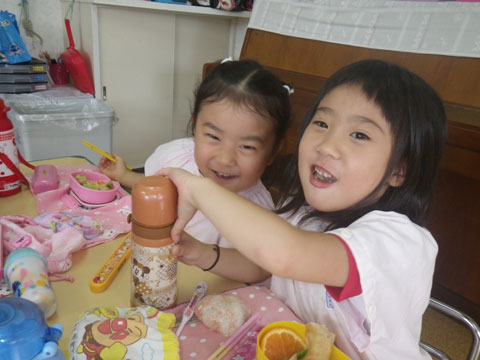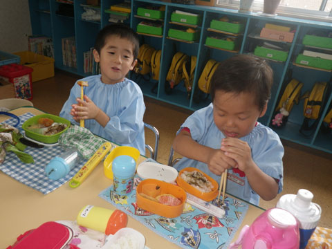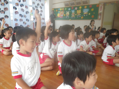 今日は年少組さんも年長組の教室にて便乗して一緒に
