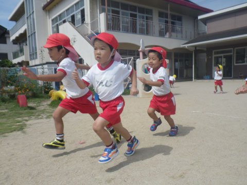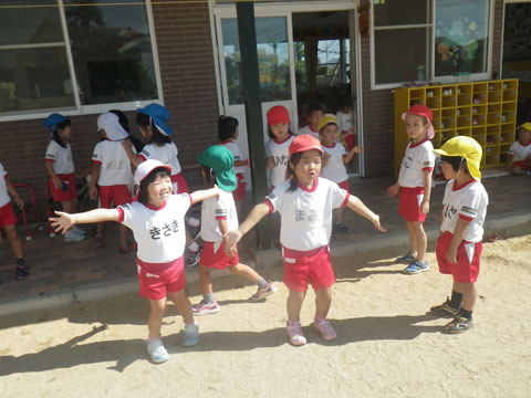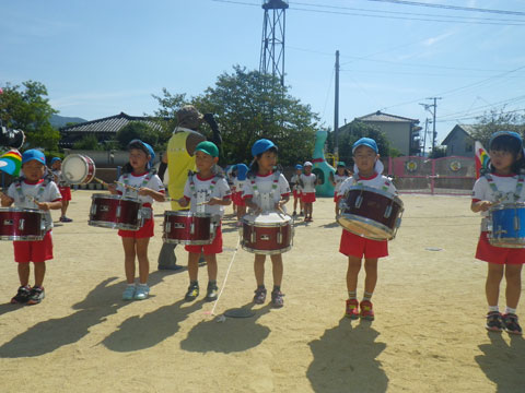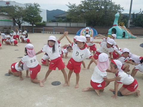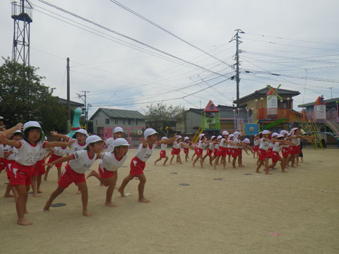 その頃、幼稚園でもマーチングに組体操、練習もいよいよ大詰めです