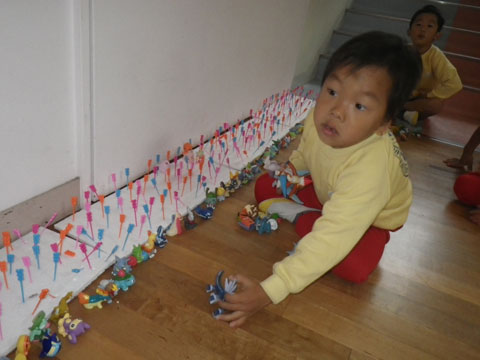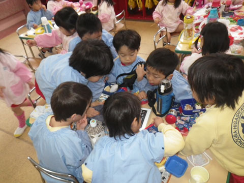 午後の遊びの時間、遊具になってみんなが見ていたものは、