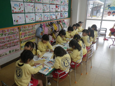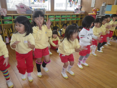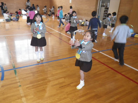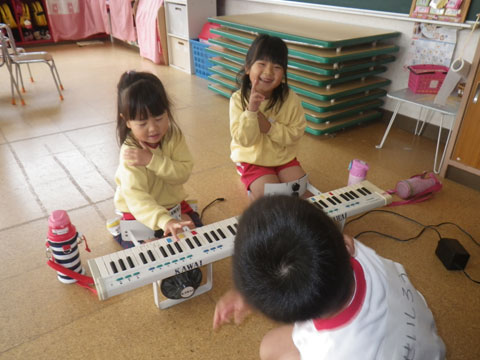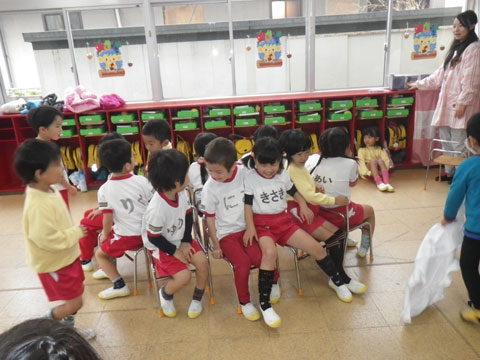 その頃幼稚園では、雨で遊べない園庭なので『いすとりゲーム』や、