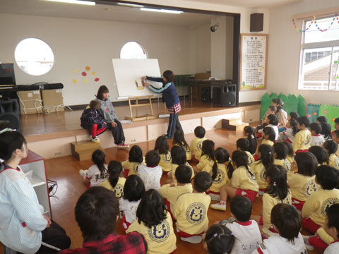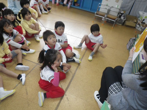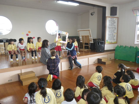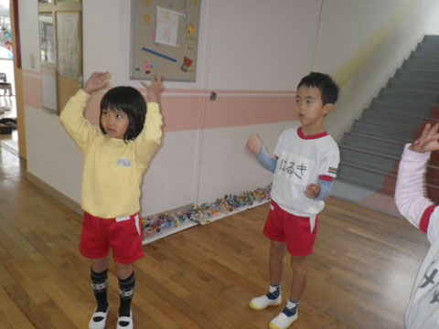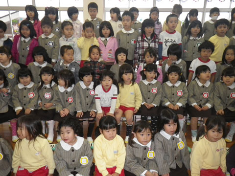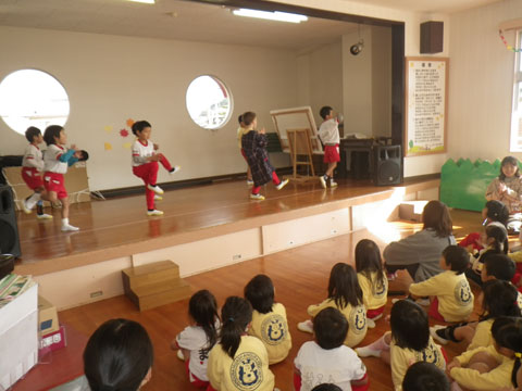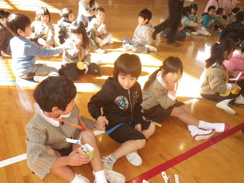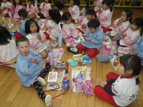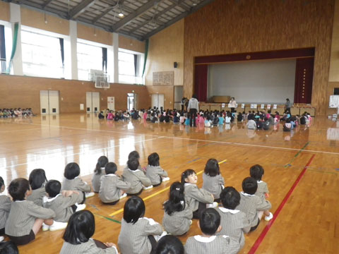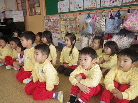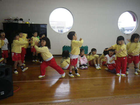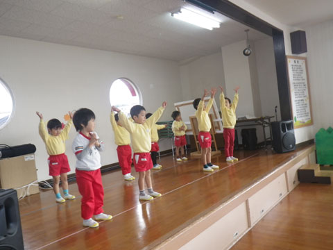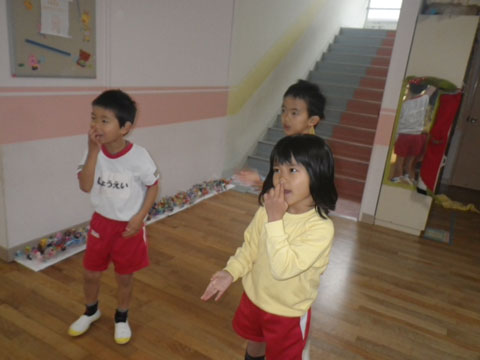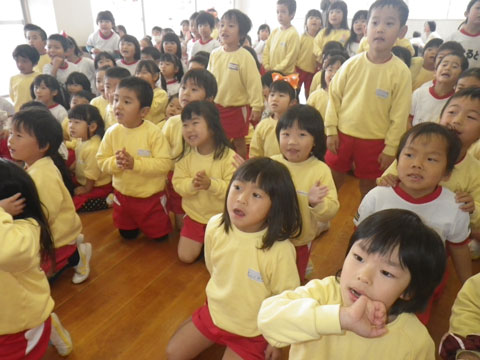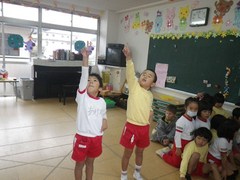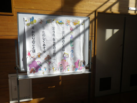 おゆうぎ会前ですが、小休止で明日は年長組さんが相浦小学校へ